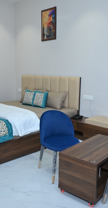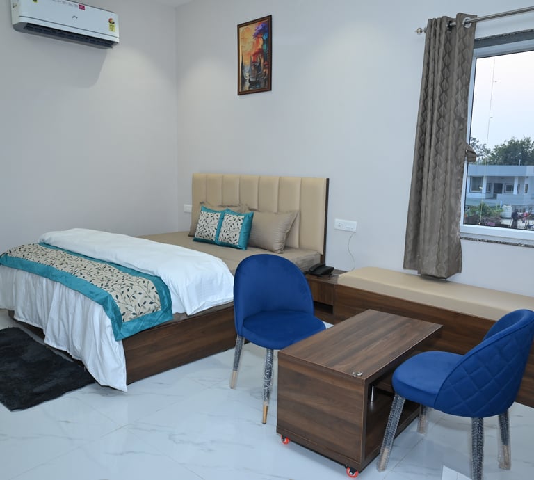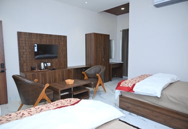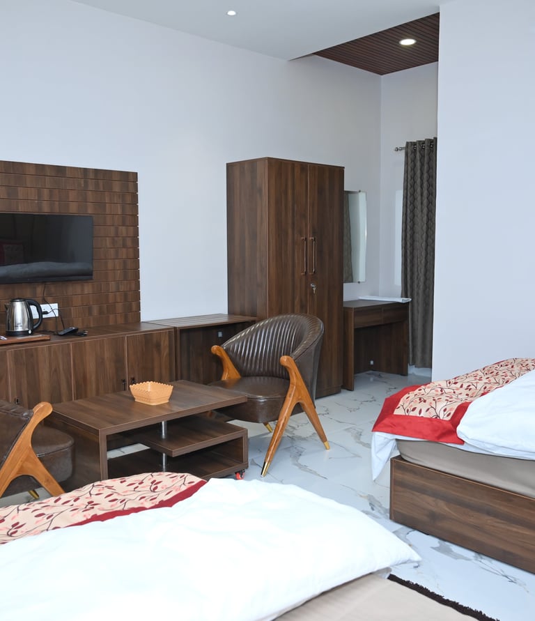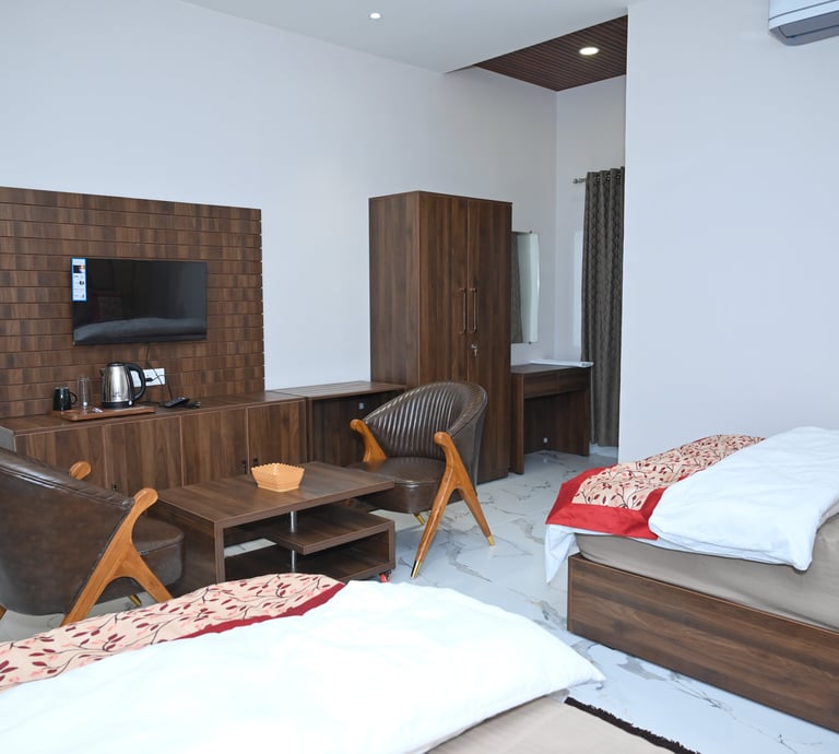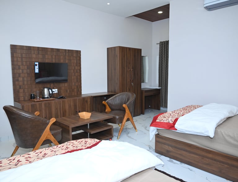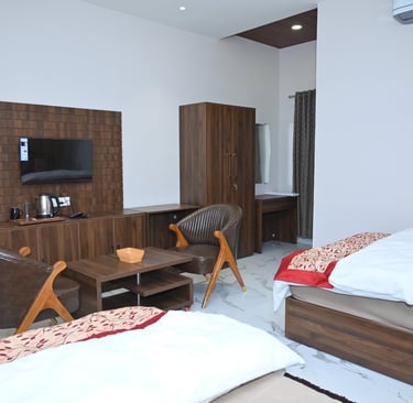 Our Super Deluxe Rooms provide a perfect blend of comfort and affordability. Ideal for families and couples, these rooms feature stylish décor, cozy beds, free Wi-Fi, air conditioning, and complimentary breakfast.