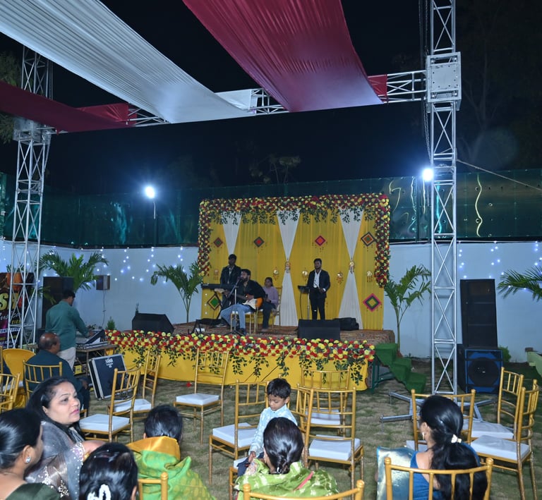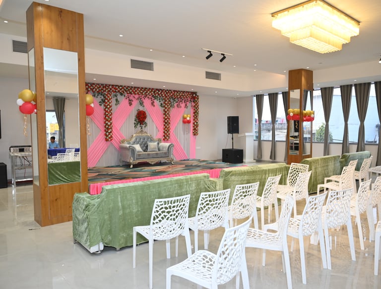 Spacious banquet hall and lush lawn perfect for weddings and special events in Balaghat